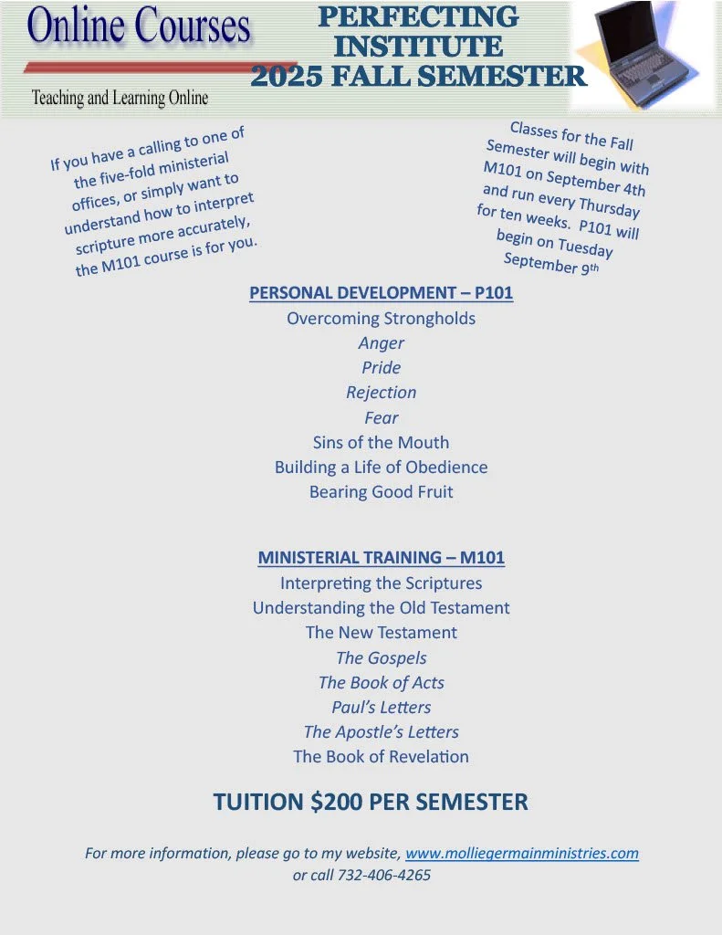 The vision of Mollie Germain Ministries is to bring the truth of God’s Word to believers to heal their hurts and satisfy their needs spiritually, physically, and socially. To give believers a better understanding of God’s Word, set them free from emotional and spiritual bondage and bring clarity where there is confusion and hope where there is despair.